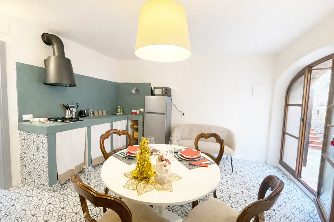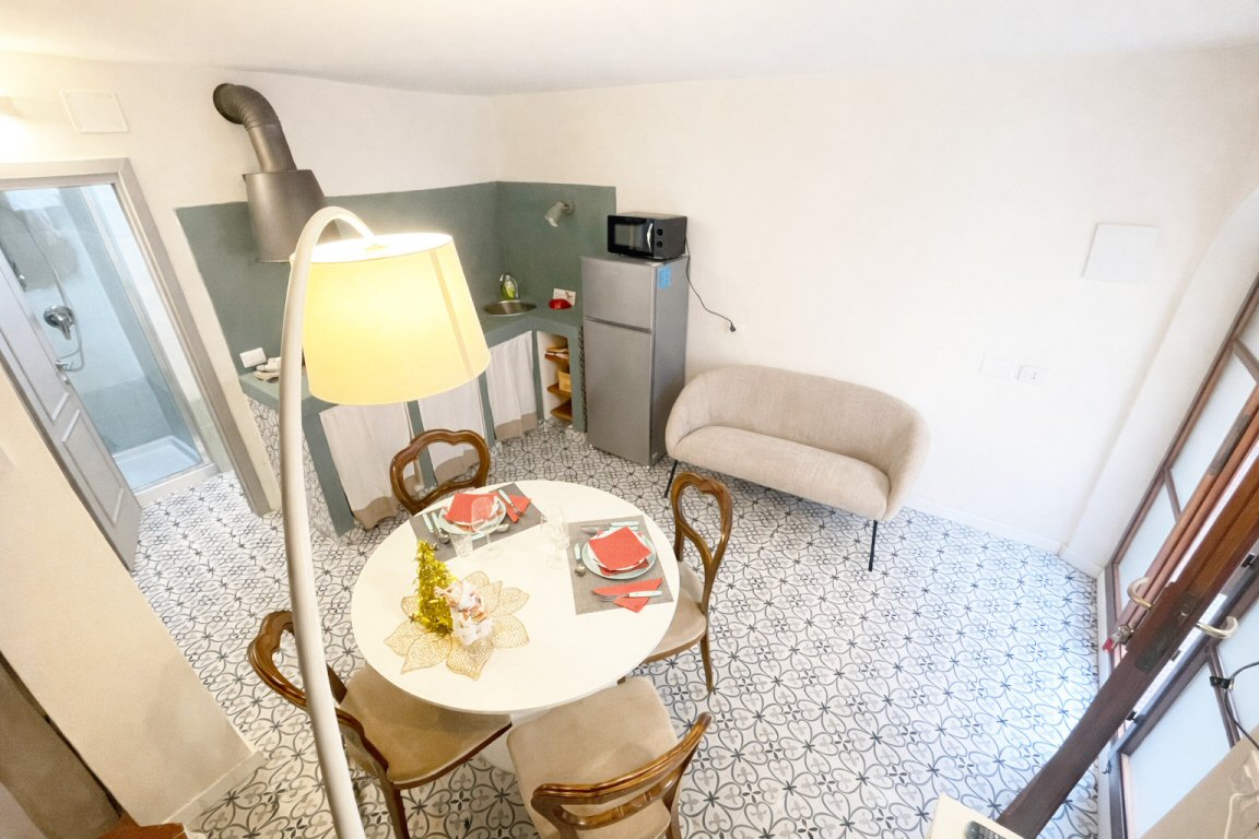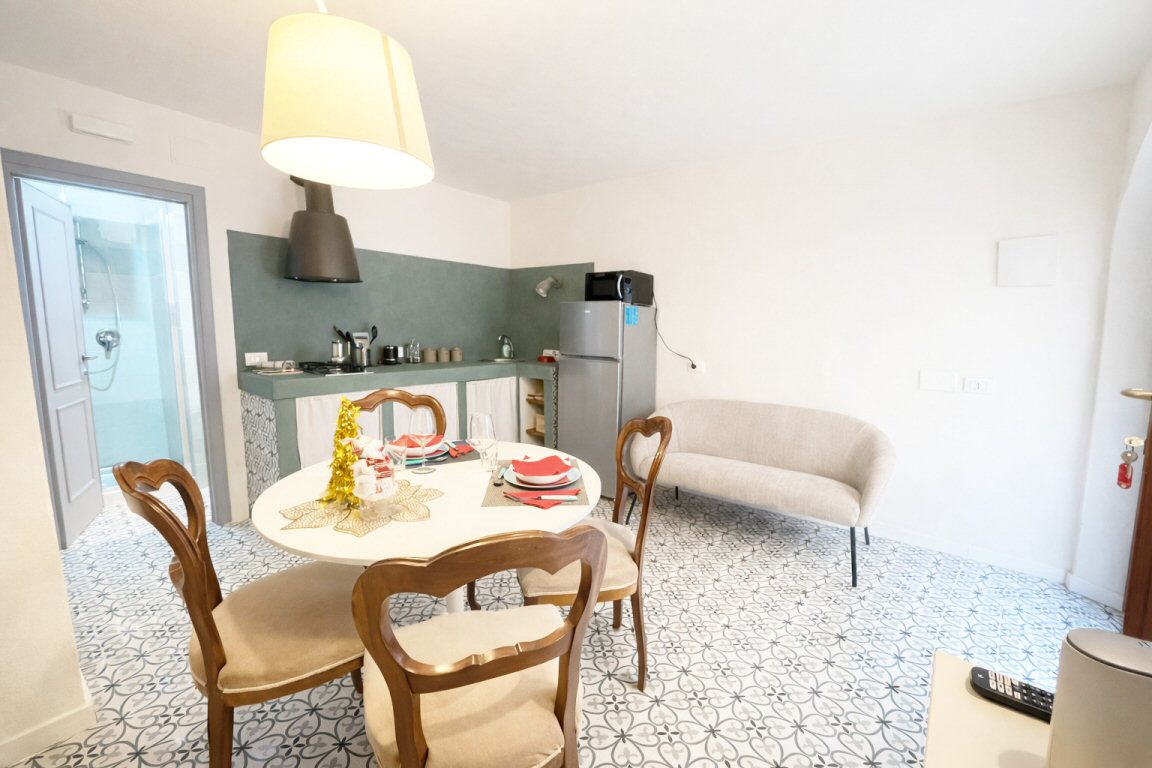 Cuor di Castello accoglie gli ospiti con un soggiorno luminoso e funzionale, dotato di cucina attrezzata e zona pranzo, perfetto per momenti di relax dopo una giornata di esplorazioni.